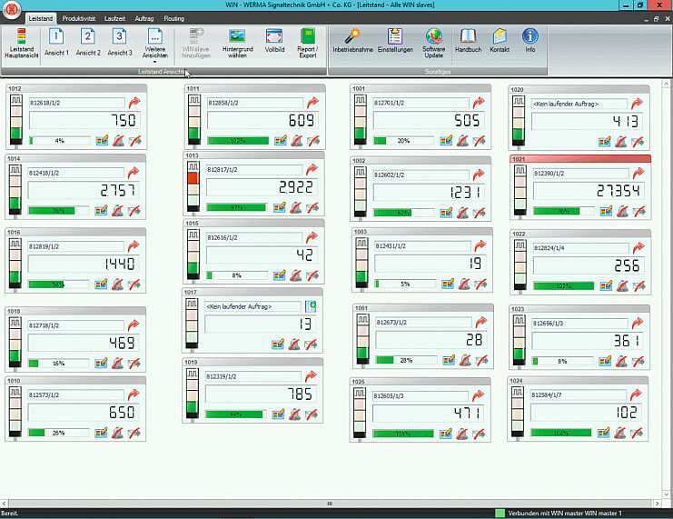 Als hardwareseitiges Basiselement an der Maschine verwendet Softwork die „WIN“-Lösung des Herstellers Werma. Dieses WIRELESS INFORMATION NETWORK besteht aus einem Funksender je Maschine und dem Empfänger im Büro, der mittels USB- oder LAN-Kabel mit den PCs verbunden wird.