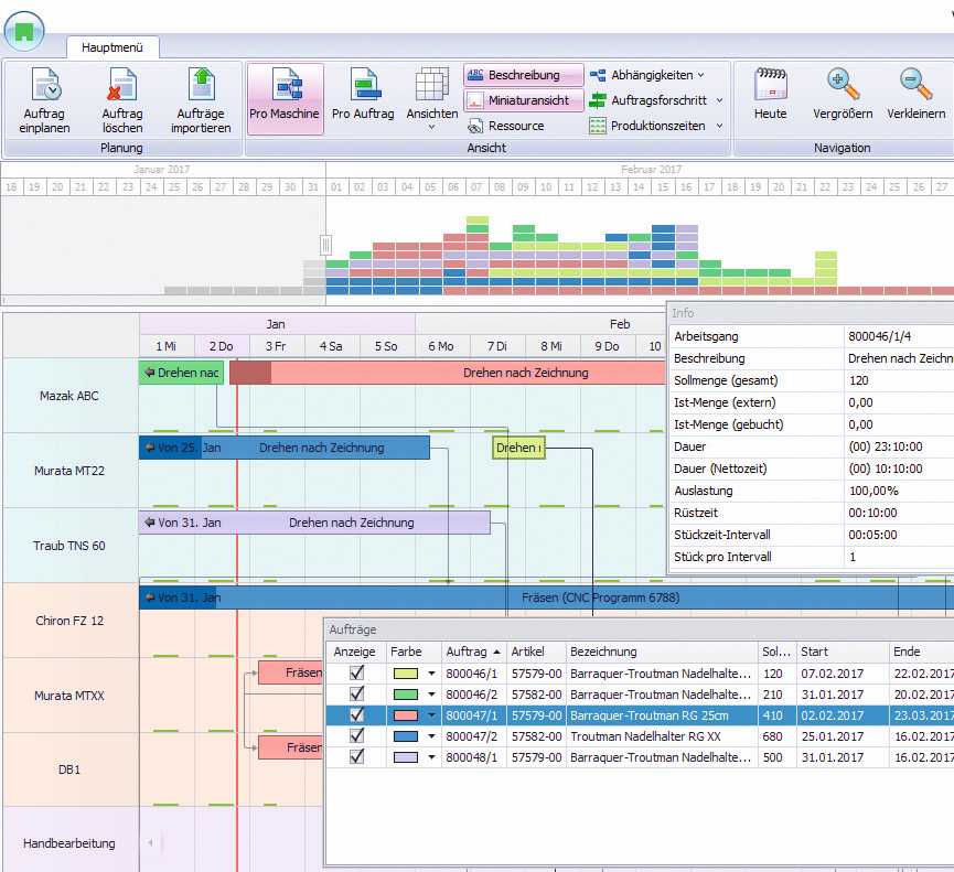 Selbst Schichtarbeit und Maschinengruppen lassen sich so abbilden.